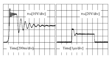 图7 加RCD吸收电路及RCD/RC双重吸收电路后vds的实验波形