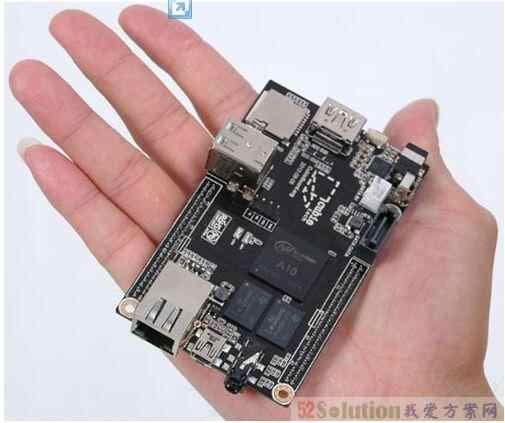 Cubieboard所采用频率为1G的ARM Cortex A8处理器,内置Mali400图形处理器。它拥有1G DDR3内存、4GBNand Flash(用于储存系统)和可扩展存储的microSD卡槽。机身两侧拥有96个扩展Pin,可以连接LCD、SPI接口设备和传感器等等。比起树梅派,Cubieboard还提供了SATA接口。