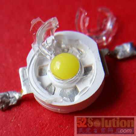 拆下蛋黄 这是硅胶+荧光粉填充物? 做成凸半圆 据说是可以得到最为理想的出光效率 掺入不同的参和剂可微改光色: 正白 暖白 冷白 瞎猜的 要不色温是怎么改变的?懂行的专业人士说下