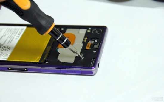 作为拆解手机的一个惯例,第一时间切断电源是必须的工作。在我们取下中壳之后,就可以取下Xperia Z1的电池了。