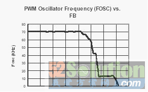 时钟频率可平滑下降或突降。平滑下降就是当反馈量超过某一阈值,通过特定模块,实现时钟频率的线性下降。POWER公司的TOPSwitch-GX和 SG公司的SG6848芯片内置了这样的模块,能根据负载大小调节频率,图2所示是SG6848时钟频率与其反馈电流的关系。