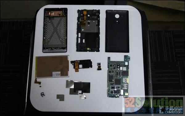 从图中我们可以看出,索尼M35t采用了大主板设计,手机摄像头区域采用一个大模块设计。首先我们先把所有和主板连接的排线全部断开。
