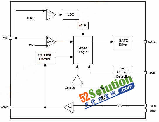 KP101是一个PWM控制器,集成高侧浮动栅极驱动器。这种开关模式电源控制器旨在用于驱动低到中等功率单级功率因数校正( PFC )发光二极体。器件工作在边界模式,适合降压拓扑结构。恒定导通时间边界模式控制方案,保证高功率因数和低栅极导通损耗。建立门控制限制从16 kHz至200 kHz的开关频率范围,解决可听噪声和开关损耗高的问题,从边界模式操作继承:开关频率将随线电压,负载电压变化或负载电流的设备功能的栅极驱动器,占空比限幅器,误差放大器,PWM控制电路和保护功能,以及需要实现的边界模式开关电源的一种特有的零交叉检测器(ZCD )技术。平均电流反馈回路是通过LED电流的精确输出。故障保护功能包括欠压锁定(UVLO),过电流保护( OCP),过电压保护(OVP )和过热保护功能( OTP ) 。