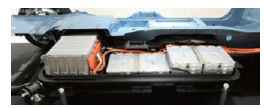 图1 日产聆风的层叠式紧凑型锂离子电池 图2 日产聆风电池箱