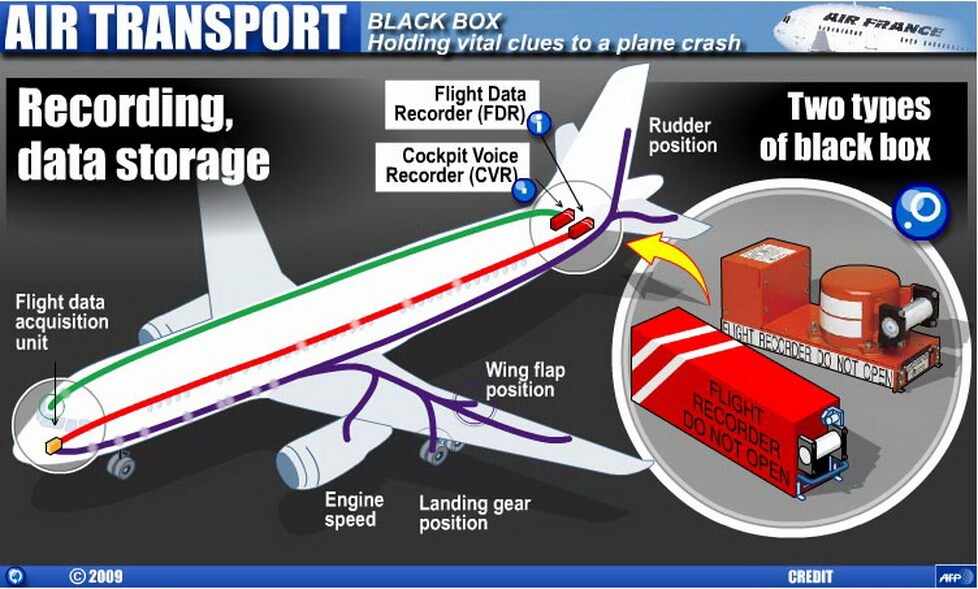 飞行记录仪,俗称“黑匣子”,是安装在航空器上,用于航空器事故的调查或维修和飞行试验。装设的位置在空难时最常被完整保留下来的机尾上。一架飞机上的飞行记录器包含两个不同的部份,分别是飞行数据记录器和驾驶舱话音记录器。