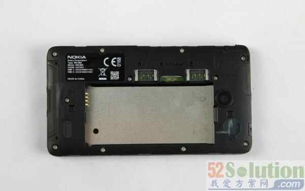 扣开后盖的一瞬间会感觉到机身的外壳极具韧性而坚固。随即就是整齐排列的元器件映入眼帘。这些都体现出诺基亚的设计做工依旧细腻精致!