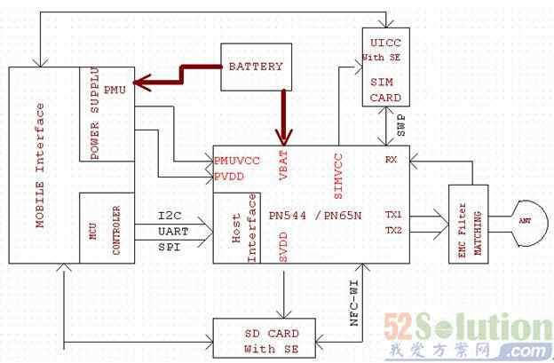 方案采用NXP NFC芯片为PN544和PN65O。PN544符合欧洲电信标准协会(ETSI)制定的最新NFC规范,能够为手机制造商和行动营运商提供完全兼容的平台,用以推出下一代NFC设备和服务。PN544完全兼容现已发布的所有通过单线协议(SWP) 连接SIM卡和主机控制器接口(HCI)的NFC规范。此外,恩智浦与Gemalto、Oberthur Technologies和Giesecke & Devrient等领先SIM卡制造商密切合作,以确保包括MIFARE技术在内的SWP接口的互通。PN65O即为PN544加上NXP的SMART MX安全模块,PN544和PN65O硬件PIN 对 PIN 完全兼容。