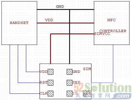 NFC 与 SIM卡安全模块接口电路 ,NFC IC 带有 SWP 一线 接口可以实现与SIM 卡的数据通讯
