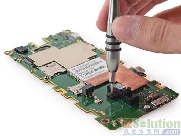 Project Tango的组装结构其实并不复杂,将几处与屏幕的连接线和贴纸移除后,整块主板就能单独拿下。而且iFix强调Project Tango的存在意义是用于研发,因为Google完全没有花费什么心思在将这部手机做小做好看,仅仅是把“需要用到的科技放到一个盒子里”而已,因此造就了一部他们认为迄今为止最好拆的手机。