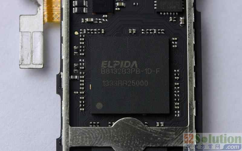 从这张图中我们可以看到在主板上部芯片集中度并不高,这里是前后摄像头以及耳机插孔的集中地。