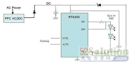 该方案的优点是效率高、成本低,缺点是AC输入、需要较多的研发成本。该方案适用于可以用AC直接输入的路灯。
