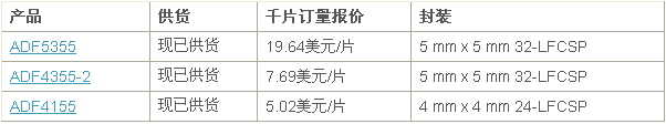ADF5355 PLL 具有同类最宽的55 MHz至14 GHz频谱范围;而 ADF4355-2 PLL 的频谱范围为 55 MHz 至 4.4 GHz。这些器件可供需要单片高性能宽带频率合成器的 RF 和微波通信系统设计人员使用。这两款 PLL 均集成超低相位噪声 VCO,6 GHz 下的 1 MHz 失调为-133 dBc/Hz -- 其噪声性能比任何竞争型器件至少低 2 dB。