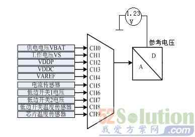 系统电源12V通过VS引脚给TLE9832供电,并通过VBAT_SENSE引脚将电源采集到测量模块进行监控。