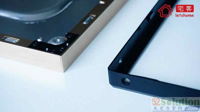 不仅是塑料外边框,而且是塑料内边框:上图中立着的是背光面板,躺着的是液晶玻璃屏,把他们组合在一起的是一层薄薄的塑料边框。是的,甚至没有粘合剂,宅客君拆完边框发现两者居然分离了。