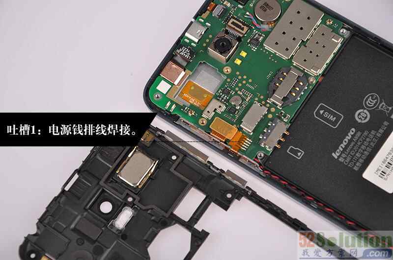 ⑤电源排线及震动马达没有采用接口设计,而是直接焊接,维修不便。