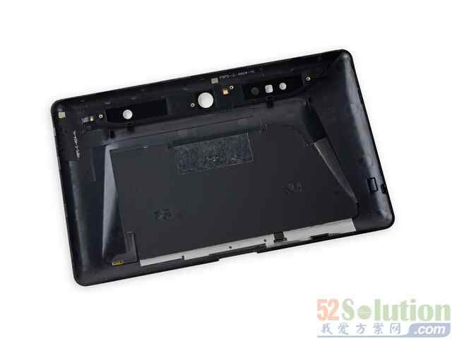 谷歌Project Tango平板后置摄像头模块被固定在底壳的基板上,通过排线与主板相连。