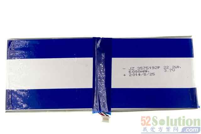 如果单单从外观来看的话,小编这里认为电池外表还是比较“简单”没有外部修饰,只有简单的配色加上电池基本规格的标注,电池容量为6000mAh,额定电压为3.7V,容量瓦时为22.2Hh,但是这段简单说明可以告诉我们,这电池可实现8H视频播放,72H的音乐播放,这组数据证明电池还是很给力的,续航着实吸引我们的眼球。