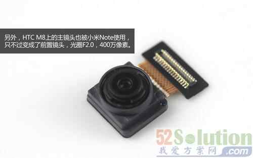 另外,HTC M8上的主镜头也被小米Note使用,只不过变成了前置镜头,光圈F2.0,400万像素。
