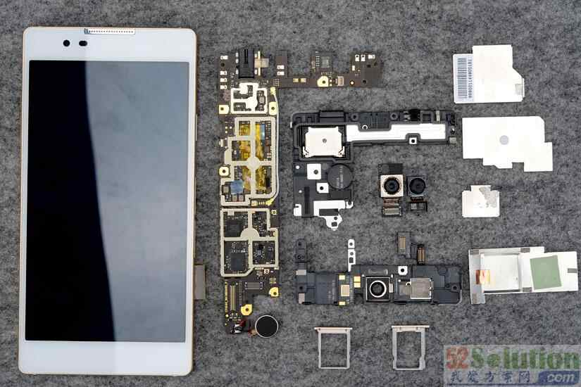 将大神X7的PCB取出后就可以看到手机的中框,中框采用航空铝合金材质,一体成型工艺,不仅坚固同时也可以起到散热的作用。