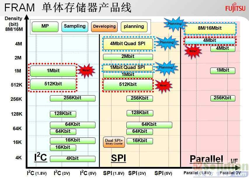 宽泛的FRAM产品线——涵盖SPI、IIC、并行接口,容量向16Mb迈进