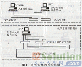 在DCS与化学水处理控制系统联网之前,各自网络为独立的局域网(以太网)。为了实现OPC方案,首先必须建立两个系统之间的光纤以太网。为了保证各自网络的相对独立和安全性,两个局域网的网段不一样,因此需设置网关和路由才能在两个系统之间建立一条以太网通道。