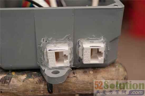 内部接口用Cat 5接口引出。注意这两个接口并不是用来连接网络的,而是用来连接其他传感器的接口,树莓派的网络功能我使用的WiFi模块。我使用这种接口的原因是一位这很方面,因为我需要向树莓派上额外接入12条线,而两个Cat 5接口就能提供16个接入点,其它四个还可以作为未来的扩展使用。
