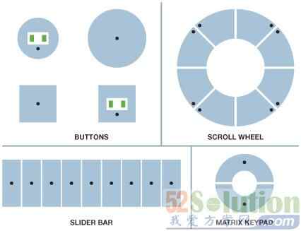 电容式触摸传感器以类似图1所示的按钮、滑动条、滚轮或其他方式提供一种用户界面。