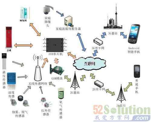 本系统最具特色之处在于具有远程手机视频监控功能,这样用户可以随时随地的对家庭状况形成远程视频监控。另外,用户可以在回家之前通过向系统发短信的形式启动系统,同时可以设定室内温度、湿度、氧气浓度等各项参数,在用户回家后,可以享受温馨的生活。