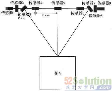 采用“五横二竖加八字”排列的电磁线圈,如图2所示。此结构能使小车在直道、直角弯、S弯、十字弯,坡道上自主稳定地寻线行驶,具有抗干扰性强、稳定性高、机械强度高等特点。在高速运行的情况下仍能保持稳定的导航功能。
