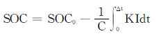 SOC估算采用了开路电压和安时 积分相结合的估算方法,对SOC估算精度的影响因素众多,温度、放电电流、循环次数等都会带来误差,有一种SOC估算公式: