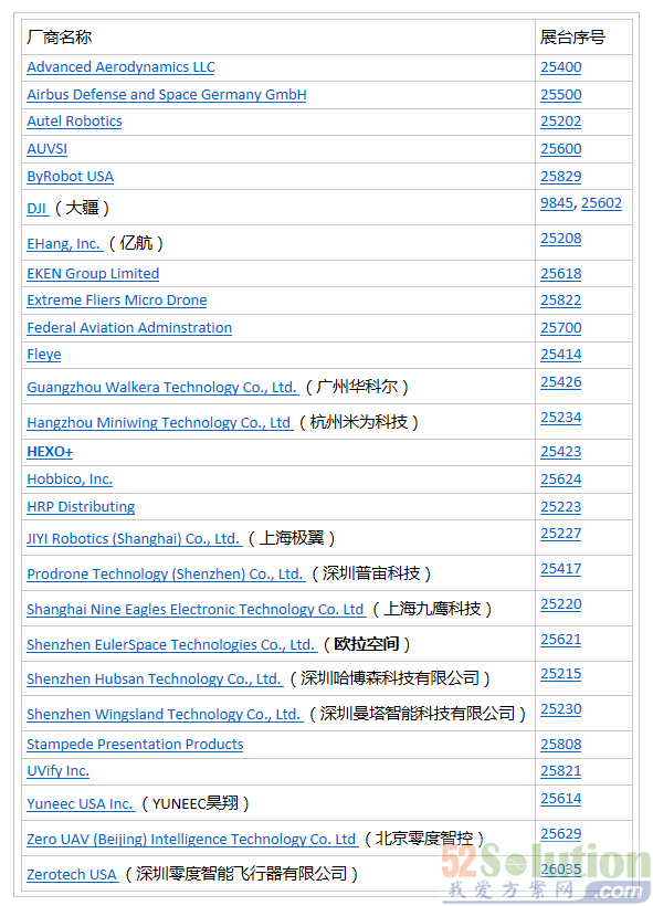 在本次的 CES 2016 无人机展台区域中,共有27家厂商参展,其中半数的厂商来自中国,比如:大疆,亿航,华科尔,米为,极翼,普宙,欧拉空间,哈博森,曼塔智能,零度智控和零度智能飞行器,各大厂商激烈混战,国产的无人机表现不俗,堪称年度的“无人机空中大战”。