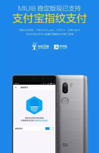 在与微信支付达成合作之前,2016年9月小米已经与蚂蚁金服的支付宝达成指纹支付合作。据记者了解,目前小米MIX、小米Note 2、小米5s、小米5s Plus、小米5、红米Pro等10余款机型已经支持了支付宝指纹支付功能。