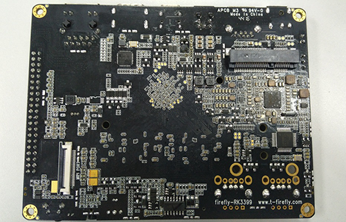板子上最显眼的莫过于这个RK3399,占据了整个视野的中心,紧挨着它的是一片高速EMMC和四片RAM芯片,右边则是WIFI和蓝牙模块,这些东西是整个系统最最核心的部分,发挥系统运行速度的优势全靠它们了。
