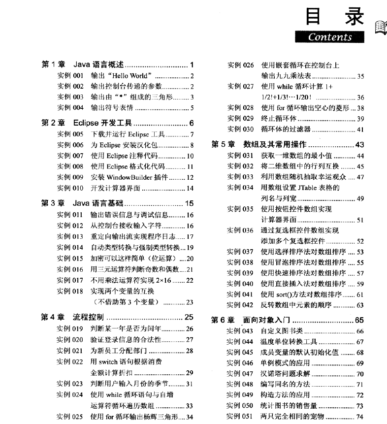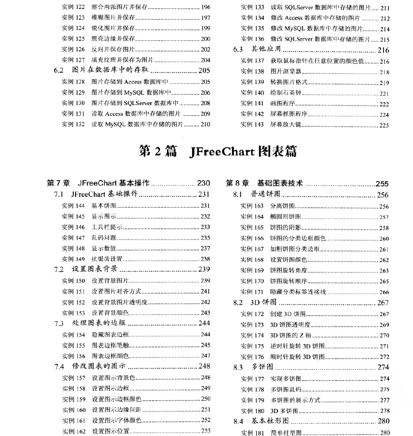 本书以开发人员在项目开发中经常遇到的问题和必须掌握的技术为中心,介绍了应用Java进行程序开发的多方面的知识和技巧,主要包括Java的图形图像、动画游戏、网络应用技术、Applet应用、XML、JFreeChart图表开发和PDF文档处理等内容。全书分为6篇21章,共计598个实例,每个实例都经作者精心筛选,具有很强的实用性,其中一些实例是开发人员难于寻觅的解决方案。