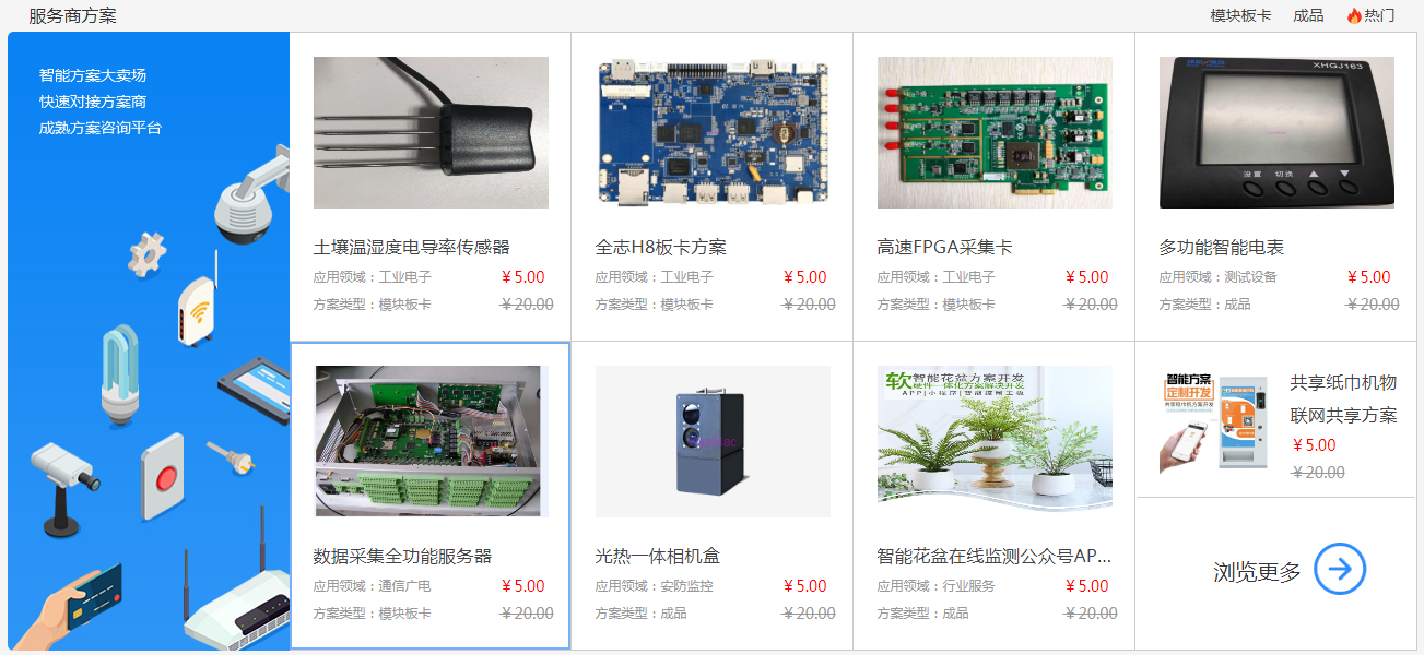 可免费将已有成熟产品方案上传至方案超市进行展示,增加方案曝光量,促进产品或方案的二次销售/开发。