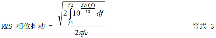 f1 与 f2 之间的 RMS 相位抖动可用等式 3 进行定义。