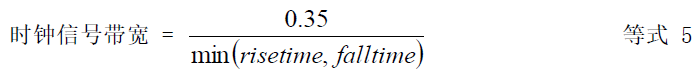 用于计算时钟信号带宽和时钟信号上升时间/下降时间之间关系的通用等式是: