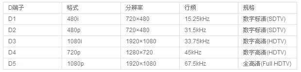 日本的D端子,采用了类似计算机的多针D型插接头,用来直接传输数字图像信号,根据传输数字信号的规格不同,D端子已经形成了一个系列的型号。目前有D1、D2、D3、D4、D5,系列序号越高,传输数据的规格越高。