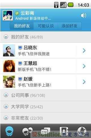 5.飞信(晨曦版及以上版本)对联通、电信用户开放注册。三网合一,移动、联通、 电信都可以注册并使用飞信,互加飞信好友!