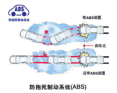<3>防抱死系统(ABS)不能够阻止物理学自然定律对汽车发生作用,它对制动或转向效率上的提高也不会超越汽车本身的制动力、轮胎或牵引力所提供的条件。