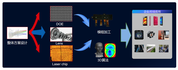 创始人李安表示,3D扫描成像的实现,需要的是一整套系统级技术,包括设计成像光学、照明光学、激光、衍射光学等,进行相互配合。这其中,发射端的技术难度最大,而对于DOE和VCSEL的核心技术掌握则尤为关键。如DOE的衍射效率和安全保护机制,直接决定了产品的性能优劣。