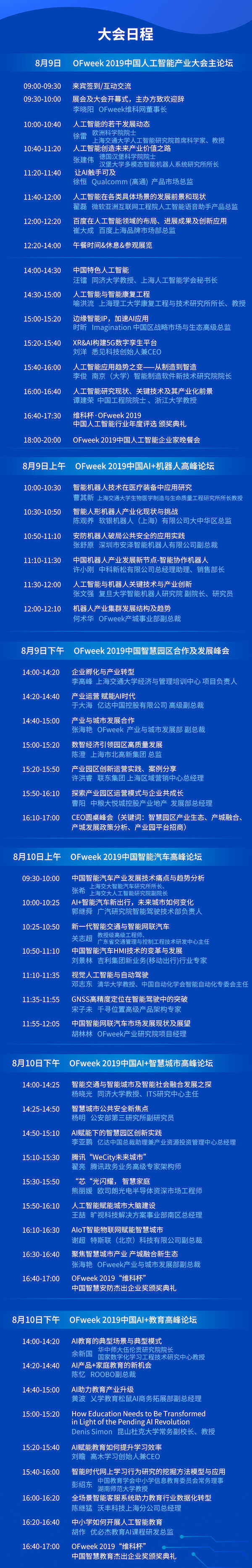 为了更好的促进人工智能的发展,打造人工智能产业链,加强相关企业的关系,探索人工智能未来发展,中国高科技行业门户OFweek维科网将于2019年8月9日-10日在上海举办“OFweek 2019 (第四届)人工智能产业大会”,深度探讨人工智能相关领域的商业应用价值,分享在智慧教育、智慧医疗、智慧城市、智能汽车等领域做出突破的公司管理者及创始人的宝贵经验!
