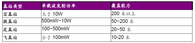 基站是接入终端与核心网络之间的接入网,根据3GPP制定的规则,无线基站按照功率划分位四大类:宏基站、微基站、皮基站和飞基站。其中,