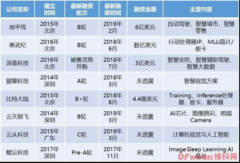 图: 中国主要新创AI芯片厂商融资状况
