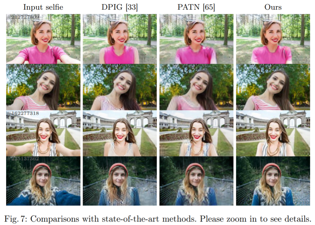 下图 7 表明,与之前的 DPIG 和 PATN 方法相比,Unselfie 方法生成了更逼真的人体姿势和背景。