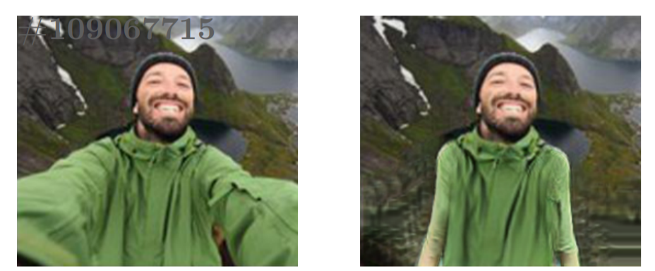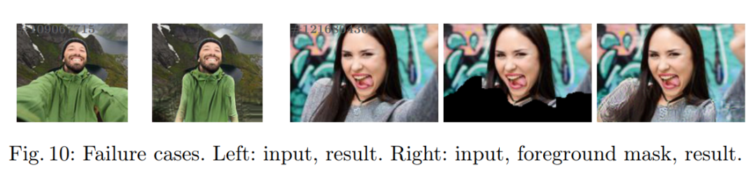 此外,图 10 示例也暴露出了背景合成的局限。不过,针对此问题,研究者在下图 11 中也展示了利用已有模型对图像背景进行修复的示例,从而证明了在大规模数据集上训练的图像修复模型的好处。
