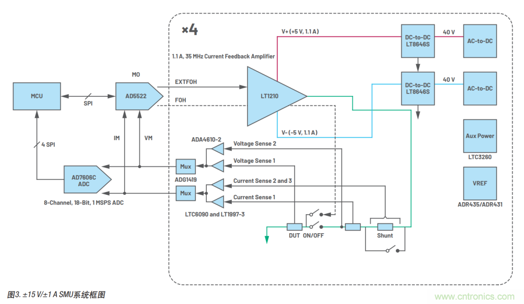 为了克服这些难点,ADI推出了一款采用四象限参数测量单元AD5522的系统解决方案,灵活且全面~