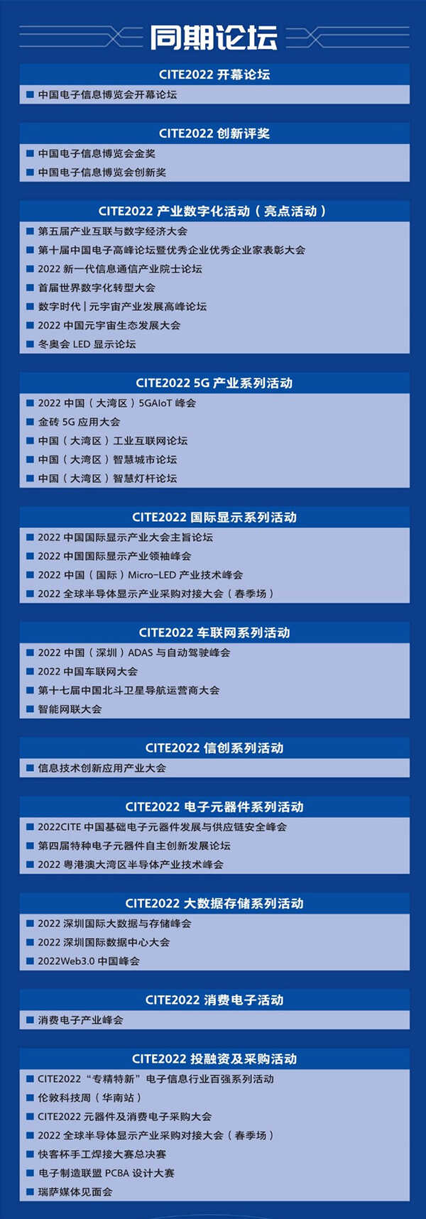 这除了是一场科技盛宴,也是一场行业思想盛宴,除了开幕式和五场高规格主论坛,大会还将围绕产业数字化、5G+、高端显示、信创、大数据存储、车联网、消费电子、电子元器件、投融资等热门话题,推出 40余场重磅论坛,助推中国电子信息产业的蓬勃发展。
