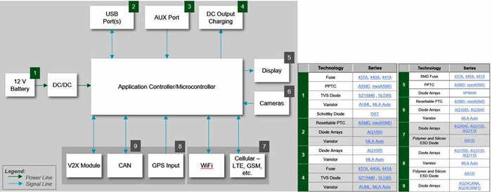 汽车ADAS控制器系统电路保护框图及对应产品系列