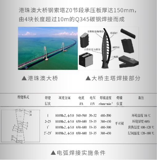 (3)使用场景示例:港珠澳大桥钢索塔Z0节段承压板厚达150mm,由4块长度超过10m的Q345碳钢焊接而成